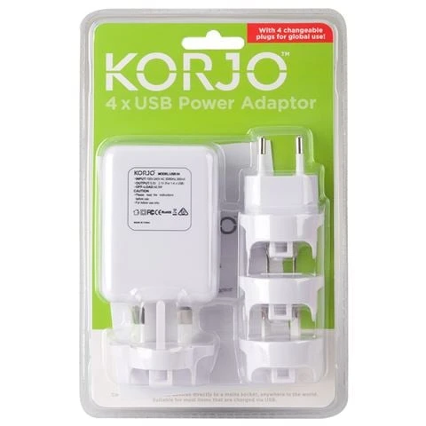 Solution? A Worldwide 4 Port USB Adaptor from Korjo. For years Korjo have been making power adaptor plugs for international travellers, and now they’ve made a number of new models for devices that are charged via USB ports, such as digital cameras, iPads, GPS and hand-held gaming consoles.